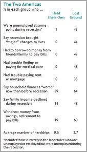 Small groups of people are desperately in worse shape, some people are in good shape but have not improved, most people are doing fine but hearing all the talk about the top 1% and feel entitled to some of what they got. That is reality. we have a higher standard of living than any country of any size in world. We live longer, are, other than fat, in good health, best and largest economy in the world, low unemployment, low overall violence <with isolated pockets which people distort to a larger view>.